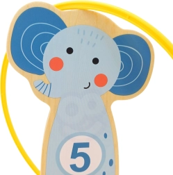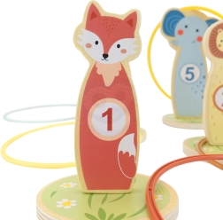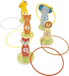 Jede Tier-Zielscheibe hat eine Zahl – beim Werfen der Ringe trainieren Kinder Konzentration, Auge-Hand-Koordination und üben gleichzeitig das Punktezählen auf spielerische Weise.