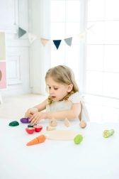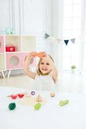 Das Spiel mit Lebensmitteln fördert die Entwicklung von Feinmotorik, Hand-Auge-Koordination, Kreativität sowie das Erkennen von Farben und Formen. Natürliche Materialien und sorgfältige Verarbeitung gewährleisten Langlebigkeit und Sicherheit beim täglichen Spielen.