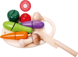 Dieses Holz-Gemüseschneideset der Marke CLASSIC WORLD ist ideal für kleine Köchinnen und Köche, die gerne die Welt der Erwachsenen nachahmen. Die Gemüsestücke sind mit Klett verbunden, sodass Kinder sie mit dem Holzmesser „schneiden“ und wieder zusammenfügen können – unterhaltsam, sicher und lehrreich.