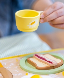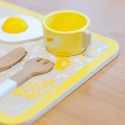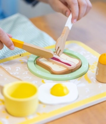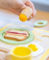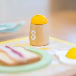 Lassen Sie Ihre Kinder in warmen, kreativen Spielspaß mit dem Holz-Frühstücksset von Classic World eintauchen. Dieses Set bietet nicht nur viele Spielmöglichkeiten, sondern hilft Kindern auch, soziale Fähigkeiten und gute Tischmanieren zu entwickeln. Ideal für Kinder ab 3 Jahren, enthält dieses Set einen Teller, Besteck, einen Becher, Salz, Pfeffer, ein Ei, Toastscheiben, eine Speckscheibe, eine Serviette und ein Serviertablett.