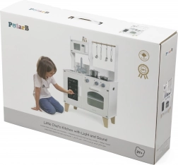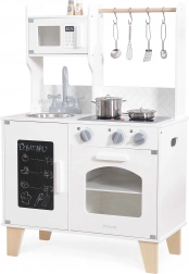 Diese Holzküche bietet realistische Elemente wie einen Ofen, einen Herd und eine Mikrowelle, die stundenlanges fantasievolles Kochen ermöglichen.