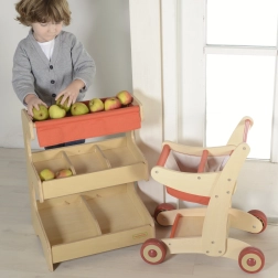 Dank der Holzkonstruktion trägt dieser Marktstand dazu bei, die Produktion von Plastikabfällen zu reduzieren und fördert nachhaltiges Spielen.