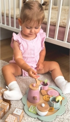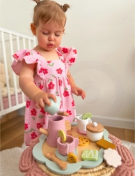 Das Tee-Set ist ideal für Kinder, die gerne Nachmittagstees spielen. Das Set ist aus hochwertigem Holz gefertigt und besteht aus verschiedenen bunten Komponenten, die zum Spielen einladen.