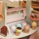 Der Woopie Green Holz-Eiswagen ist nicht nur ein schönes Stück in sanften Pastellfarben, sondern auch voller Möglichkeiten für kreatives Spielen. Ihr Kind kann Verkäufer, Kunde oder sogar "Eismeister" werden und eigene Eiskreationen nach der eigenen Fantasie gestalten!