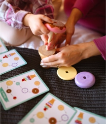 Dieses Spielzeug ermöglicht es Kindern, eigene kreative Kombinationen von bunten Ringen zu kreieren und ihre Vorstellungskraft und Kreativität zu entwickeln.