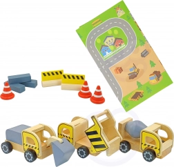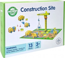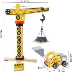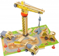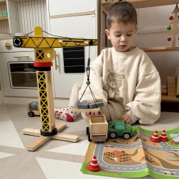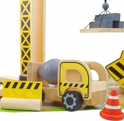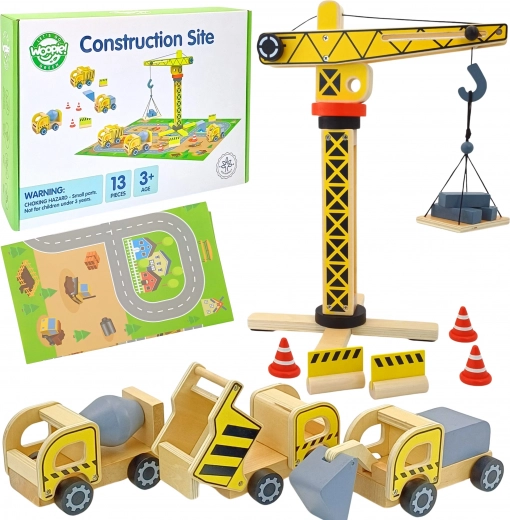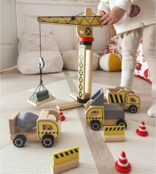 Das erweiterte Baukasten-Set von WOOPIE GREEN ist für kleine Bauherren konzipiert. Dieses Set enthält einen großen Holzkraftkran, drei Baufahrzeuge und weiteres Zubehör für realistische Bauspiel-Situationen.