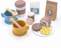 Das Set ermöglicht es Kindern, reale Cafésituationen nachzuspielen, was ihre Kreativität und Vorstellungskraft stärkt.