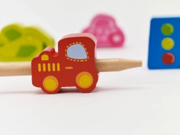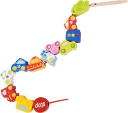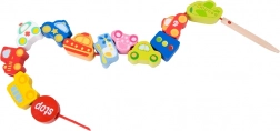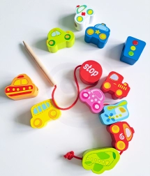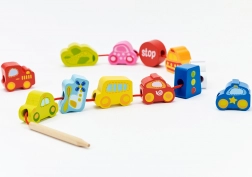 Entdecken Sie ein cleveres Spielzeug, das Lernen und Spaß verbindet. Holzperlen in Form von Autos, Bus, Flugzeug und Verkehrsschildern lassen sich leicht auf eine Schnur mit Holzende auffädeln. Beim Spielen trainieren Kinder ihre Feinmotorik, Bewegungsgenauigkeit sowie das Erkennen von Farben und Formen.