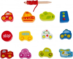 • 13 Holzteile zum Thema Verkehr + Schnur zum einfachen Auffädeln