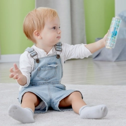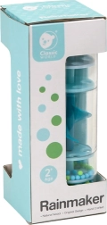 Beruhigendes Musikinstrument für die Kleinsten: Der blaue Regenstab von CLASSIC WORLD kombiniert Holz und transparenten Kunststoff. Im Inneren rieseln bunte Kügelchen und erzeugen einen sanften Regengeräusch-Effekt. Einfach schütteln oder um 360° drehen – schon wird er zu einer unterhaltsamen Rassel/Glocke, ideal für die sensorische Entwicklung und erste rhythmische Übungen.