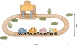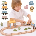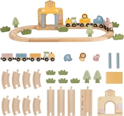 Dank der soliden Verarbeitung aus hochwertigem Holz ist das Set langlebig und sicher für den täglichen Einsatz. Kinder fördern Feinmotorik, Hand-Auge-Koordination und Kreativität, wenn sie Geschichten mit den Tieren – Elefant, Löwe und Fuchs – erfinden. Die Eisenbahn eignet sich hervorragend für alleiniges und gemeinsames Spiel.
