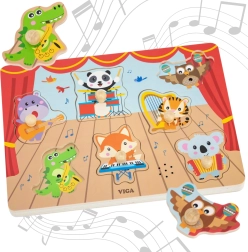 Betreten Sie die Welt der Musik und des Lernens mit dem originellen Holzpuzzle der Marke VIGA, in dem tierische Musiker die Fantasie Ihrer Kinder anregen. Beim Anheben und erneuten Einsetzen des Teils hören Kinder den realistischen Klang des Musikinstruments, was das Lernen durch Erfahrung fördert.