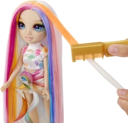 Entdecke die kreative Welt des Stylings mit der Rainbow High Amaya Puppe. Dank ultralanger, leicht kämmbarer Haare und eines Sets mit farbigen Kreiden gestaltest du zarte Pastelltöne ebenso wie auffällige Regenbogensträhnen. Die Farben spülst du einfach aus – und kannst immer wieder neu experimentieren.