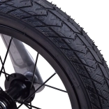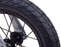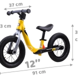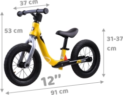 Für eine sicherere Kontrolle sorgen Lenkeinschlagbegrenzer, rutschfeste Griffe und ein Rahmenschutz. Die schnelle Sattelverstellung im Bereich von ca. 31–37 cm gewährleistet die richtige Sitzhöhe. 12"-Luftreifen mit Drahtspeichen bieten eine komfortable Fahrt und guten Grip auf verschiedenen Oberflächen.