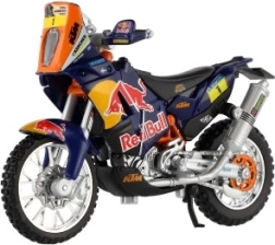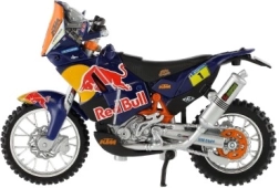Das Modell enthält die originalgetreuen Farben und den Stil des beliebten Red Bull KTM Teams aus der Dakar Rally.