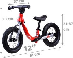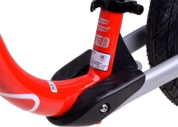Mehr Sicherheit und Komfort bieten der Lenkeinschlagsbegrenzer, der zu starke Lenkbewegungen verhindert, ergonomische Lenker mit rutschfesten Griffen sowie die Schnellspanner-Höhenverstellung des Sattels (ca. 31–37 cm), damit das Laufrad mit dem Kind mitwächst. Hintere Fußstützen ermöglichen beim Bergabfahren ein bequemes Abstellen der Füße und das Trainieren der Balance.