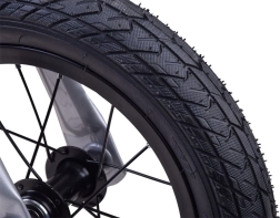 Profilierte Reifen und Metallspeichen sorgen für guten Grip, Stabilität und eine ruhige Fahrt auf verschiedenen Untergründen.