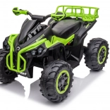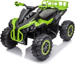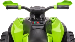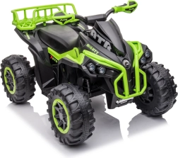Dieses elektrische Kinder-Quad überzeugt mit auffälligem grün-schwarzem Design und realistischer Ausführung. Breite Reifen mit tiefem Profil geben Sicherheit auf unebenem Terrain, während ergonomische Lenker mit rutschfesten Griffen ein bequemes und leichtes Handling ermöglichen. Ideal für Hof, Garten und befestigte Wege.