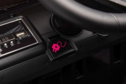 Das schwarze elektrische Auto Off Road Mountain für Kinder ist mit besonderem Augenmerk auf Details gestaltet, die echte Geländefahrzeuge nachahmen.