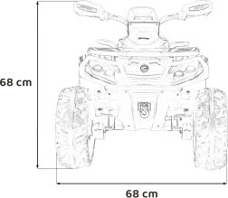 Fahrzeugabmessungen: Länge 108 cm, Breite 68 cm, Höhe 68 cm.