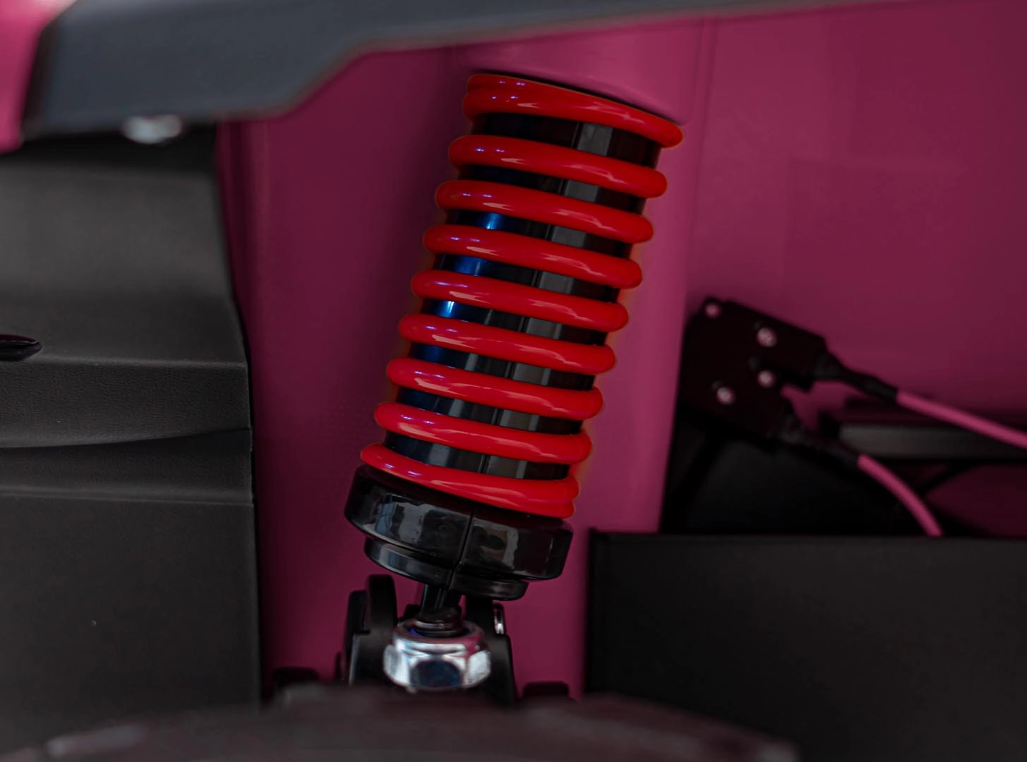 Federung: Doppelte hintere Stoßdämpfer für eine sanfte Fahrt auf unebenem Terrain.