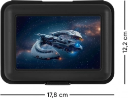 Die Brotdose mit Raumschiffmotiv ist für alle Weltraumliebhaber da. Diese schwarze Dose ist nicht nur stilvoll, sondern auch praktisch:
