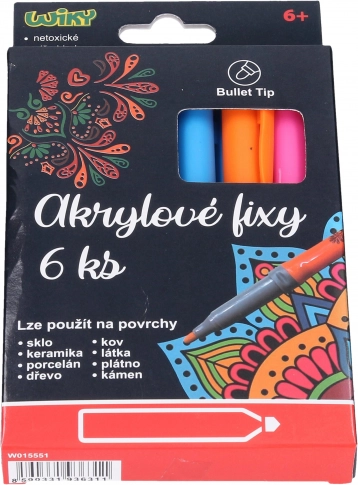 Set von Acrylstiften in 6 Farben für verschiedene Oberflächen. Ideal für Glas, Keramik, Porzellan und mehr.