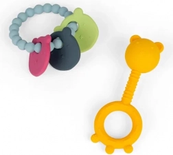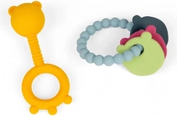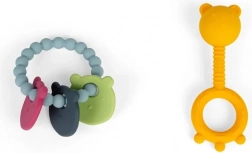 Kombiniert Rassel und Beißring in einem, bietet Linderung bei Zahnungsschmerzen und sensorische Reize.