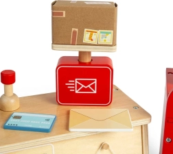 Erleben Sie, was alles in der Post passiert, mit diesem faszinierenden Set für Kinder ab 3 Jahren. Das Set enthält einen Briefkasten, eine Kasse, eine Waage, einen Paketsack, Pakete, Briefe und vieles mehr, was kleine Postboten für ihre Arbeit benötigen. Jedes Teil ist aus nachhaltigem FSC® zertifiziertem Holz gefertigt und mit ungiftigen Farben bemalt.
