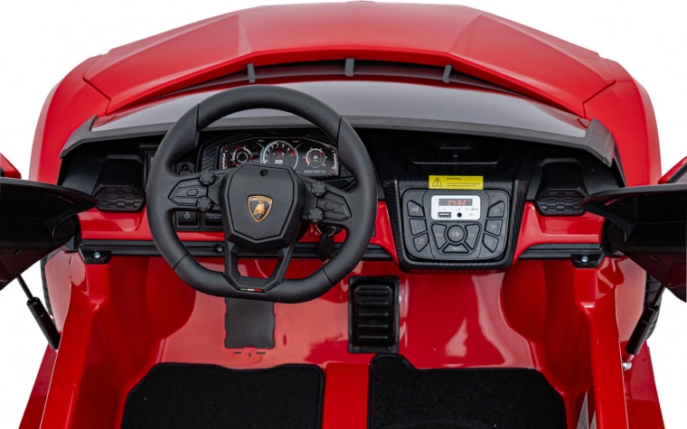 Der Innenraum überzeugt mit einer doppelsitzigen Bank aus Eco-Leder mit Sicherheitsgurten, realistischem Lenkrad, Pedalen und einem übersichtlichen Bedienpanel. Kinder werden die Audioausstattung lieben – FM-Radio, MP3, USB, AUX und Bluetooth, inklusive vorinstallierter Melodien und Hupe. Aufklappbare Scherentüren und voll funktionsfähige LED-Beleuchtung unterstreichen den Premium-Look.