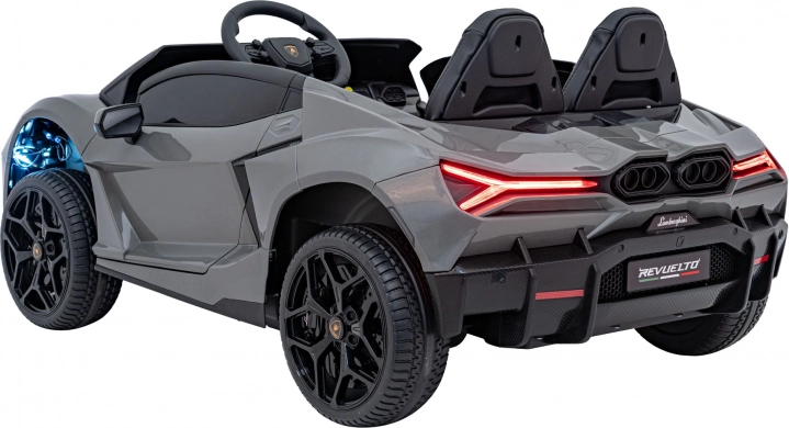 Der erfüllte Traum kleiner Fahrer: Das realistische, zweisitzige LAMBORGHINI Revuelto XL Kinderauto in Grau vereint Premium-Design mit Leistung und Sicherheit. Leistungsstarke 4 Motoren à 200 W sorgen für gleichmäßigen Vortrieb, die 24 V 7 Ah Batterie für längere Laufzeit und die weichen EVA-Räder für komfortables Fahren auch auf Unebenheiten. LED-Beleuchtung und markante Karosserielinien verleihen echtes Supercar-Feeling.
