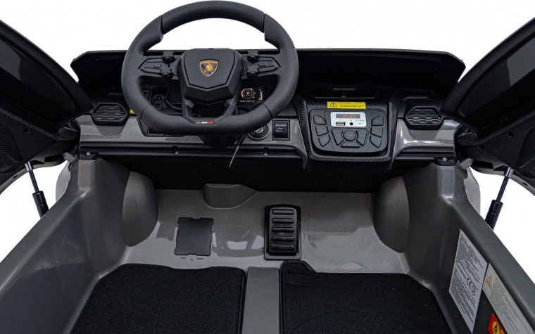 Eltern schätzen die 2,4 GHz Fernbedienung mit Safety Stop und der Wahl aus 3 Geschwindigkeiten. Kinder genießen sanftes Anfahren, Vorwärts-/Rückwärtsfahrt, öffnende Scherentüren, bequeme Sitze aus Eco-Leder sowie umfangreiches Infotainment – FM, Bluetooth, USB, MP3, AUX, Effekte und Hupe am Lenkrad.