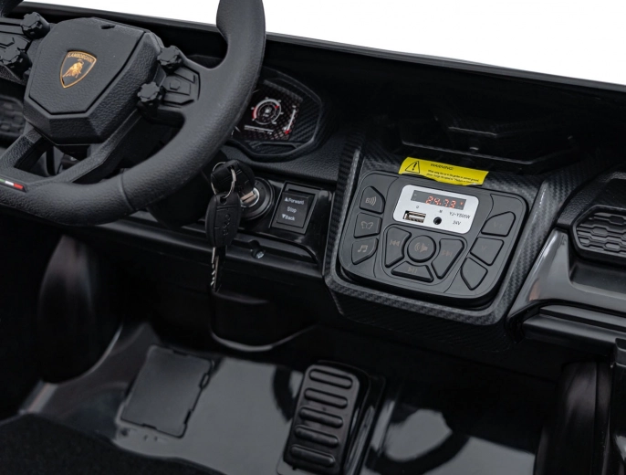 Ein erfüllter Traum kleiner Fahrer – ikonischer Supercar-Look des LAMBORGHINI mit realistischen Details, sportlichen EVA-Rädern 24×9 cm und authentischem Cockpit. Das starke Set aus 4×200 W Motoren und 24V-Akku sorgt für flotte, aber sichere Fahrten, auch für zwei Kinder. Hintere Federung erhöht den Komfort auf Unebenheiten, die hohe Bodenfreiheit (10 cm) hilft auf leichtem Gelände.