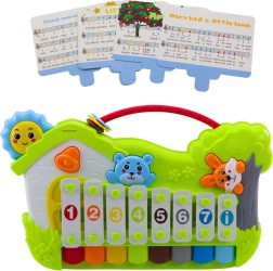 Dank der beiliegenden 5 Notenkarten mit einfachen Liedern lernen Kinder Schritt für Schritt bekannte Melodien nachzuspielen, trainieren Konzentration, das Erkennen von Klängen und entwickeln ihr musikalisches Gehör. Sichere Kunststoffmaterialien, Metallleisten des Xylophons und abgerundete Kanten sorgen für eine bequeme und sichere Nutzung schon ab sehr jungem Alter.