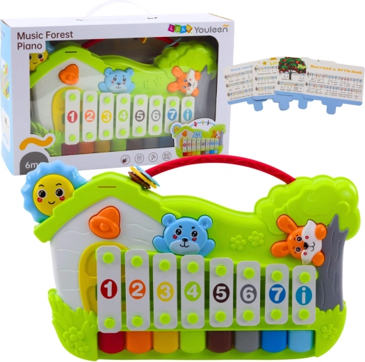Das Wald-Musikpianino kombiniert den Zauber eines klassischen Xylophons mit Klaviertasten, sodass Kinder eigene Melodien kreieren und ihre Bewegungskoordination verbessern können. Der niedliche Waldlook mit Tieren und die farbigen, nummerierten Tasten erleichtern das Erlernen grundlegender Töne und Rhythmen.