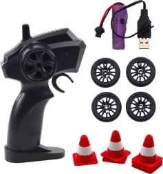 Im Lieferumfang sind außerdem zusätzliche Drift-Reifen enthalten, die kontrollierte Schleuderfahrten erleichtern, sowie ein Set Pylonen zur Erstellung eines eigenen Trainingsparcours. Der über USB aufladbare Akku macht Einwegbatterien überflüssig, ist kostengünstiger und ermöglicht längeren Spielspaß.