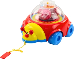 Unter der transparenten Kuppel drehen sich beim Fahren fröhliche Kugeln und ziehen die Aufmerksamkeit auf sich. Oben befindet sich ein drehbares Zifferblatt, das zum Ausprobieren animiert und das erste Zeitverständnis spielerisch fördert. Mit der praktischen Ziehschnur trainieren Kinder Gleichgewicht, Orientierung sowie Fein- und Grobmotorik. Eine tolle Geschenkidee für Kinder ab 12 Monaten.
