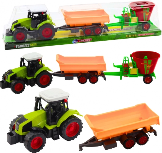 Entdecken Sie das komplette Bauernhof-Set, mit dem Kinder echte Arbeiten auf dem Hof nachspielen können. Der Traktor ahmt das Aussehen einer echten Landmaschine treu nach, der Kippanhänger sorgt für den einfachen Transport der „Ernte“ und der Futterwagen dient zum Mischen und Ausgeben des Futters für die Tiere. Das gesamte Set ist ideal für das Spiel im Kinderzimmer und im Garten.