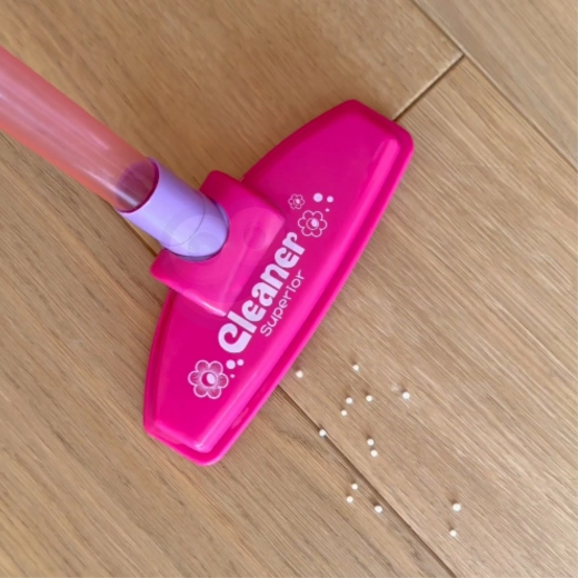Der Staubsauger saugt tatsächlich kleine Partikel auf, sodass Kinder ein sofortiges Ergebnis sehen und das Spiel noch spannender wird.