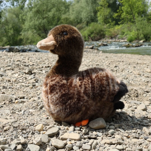 Sorgfältige Nähte, authentische Färbung und die Form der Ente vermitteln den Eindruck eines lebendigen Tierchens, das Kinder sofort ins Herz schließen.