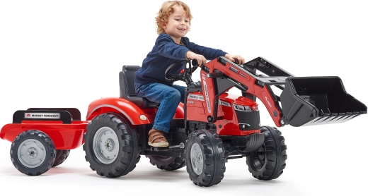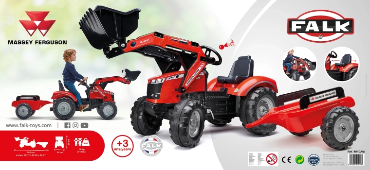 Der Trettraktor MASSEY FERGUSON des französischen Herstellers FALK ist ein wahr gewordener Traum kleiner Traktorfahrer. Realistisches Design, einfache Lenkung mit Hupenlenkrad und robuste Verarbeitung fördern aktive Bewegung, Motorik und kreatives Spiel im Garten oder Hof.