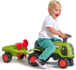 Starten Sie den Spaß im Hof oder auf dem Spielplatz mit dem CLAAS Arion Laufrad. Sorgfältige Verarbeitung, authentisches Design und eine stabile Konstruktion sorgen für sicheres und fröhliches Fahren für die Kleinsten. Der abnehmbare Anhänger transportiert Spielzeug, Sand und kleine Schätze.