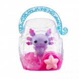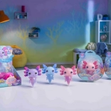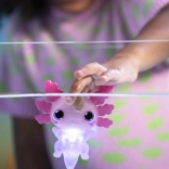 Bad und Spiel am Waschbecken verwandeln sich in eine magische Show – der Axolotl strahlt nach dem Eintauchen und fasziniert Kinder mit seinen Farben.