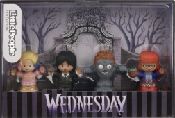 Fans der Serie Mittwoch können die Welt der Teenager-Emotionen und beängstigenden Momente wiedererleben mit diesem Little People Collector Set von Fisher-Price. Im Set finden Sie Wednesday Addams mit der Hand, Enid Sinclair, Marilyn Thornhill und das Monster Hyde in der Little People Figuren-Version.