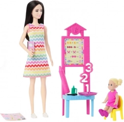 Entdecken Sie die Welt der Bildungsspiele mit der Barbie-Lehrerin in ihrem farbenfrohen Kleid und Zubehör. Ideal für Kinder, die Rollenspiele und Lernen lieben.
