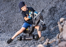 Das Kind kann sich mühelos in die gewünschte Richtung drehen und Material aufnehmen sowie abladen, ohne das gesamte Fahrzeug versetzen zu müssen.
