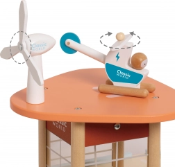 Fördert ökologisches Denken und lehrt Kinder über erneuerbare Energiequellen durch Elemente wie Solarpanelen und Windrad.