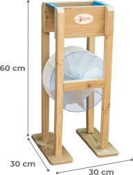 Geben Sie Sand oder Wasser in den Trichter und beobachten Sie, wie sich das blaue Rad zu drehen beginnt. Kinder verstehen intuitiv das Prinzip von Bewegung und Energie und entwickeln logisches Denken.