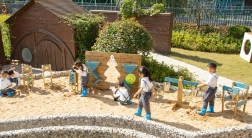 Sandkasten, Wasserspiel, Außen- und Innenbereich