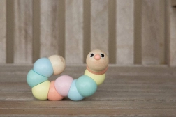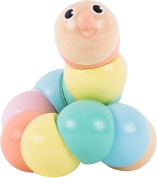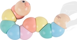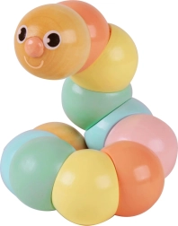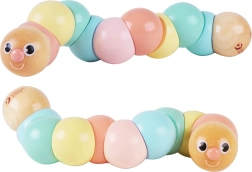 Die Holzraupe ist das ideale erste Motorikspielzeug: Sie liegt angenehm in der Kinderhand, lässt sich geschmeidig biegen und drehen und motiviert dazu, Formen und Bewegungen zu entdecken. Pastellfarben stimulieren die visuelle Wahrnehmung, und das freundliche Gesicht der Raupe lädt immer wieder zum Spielen ein.